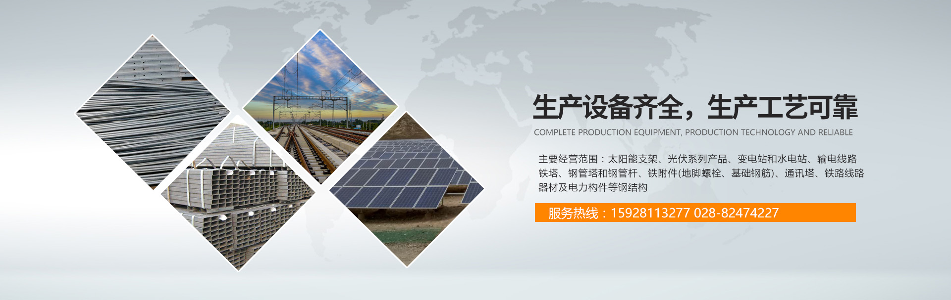 四川泰洋電力構件制造有限公司位于成都市新津縣安西鎮安西村五組,地處成都、樂山、雅安、交通樞紐中心,運輸便捷,地理環境優越。企業廠區面積大約為4萬5千平方米,注冊資本為陸仟萬元人民幣。公司主要經營范圍:太陽能支架、光伏系列產品、變電站和水電站、輸電線路鐵塔、鋼管塔和鋼管桿、鐵附件(地腳螺栓、基礎鋼筋)、通訊塔、鐵路線路器材及電力構件等鋼結構。本公司設有采購部、生產部、銷售部、技術部、質檢部、辦公室后勤等科室,擁有員工三百多名,具有雄厚的技術實力。我公司生產設備齊全,生產工藝可靠,場地開闊,道路暢通,吊裝方